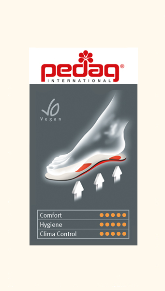 Palmilhas desportivas feitas de material amortecedor de alta qualidade que previnem e aliviam os pontos de pressão na sola do sapato. A utilização da palmilha pedag® Viva® Sport resulta num suporte contra as dores nas articulações, fascite plantar, pés abertos, pés cavos (arqueado) e dores nas costas.