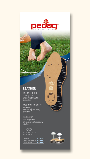 Uma brisa de frescura para os seus sapatos - as palmilhas de couro pedag® Leather acabam com os cheiros desagradáveis. Vai sentir-se mais confiante e confortável.