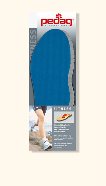 A palmilha pedag® Fitness é indicada para a prática de qualquer tipo de desporto. Com suporte acolchoado e macio para o pé, absorve os choques dos impactos que ocorrem ao caminhar, correr ou saltar. Alivia as articulações do calcanhar, joelhos e quadris. As palmilhas pedag® Fitness são feitas de látex com câmara de ar para um amortecimento perfeito, preenchidas com carvão ativado para absorver e eliminar os maus odores, deixando o pé seco e fresco em todos os momentos do dia. Palmilhas desportivas resistentes ao desgaste.