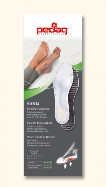 Dê ao seu pé um conforto extra no sapato: com as palmilhas de alívio pedag® Siesta. São leves, flexíveis e podem ser perfeitamente utilizadas com saltos altos.