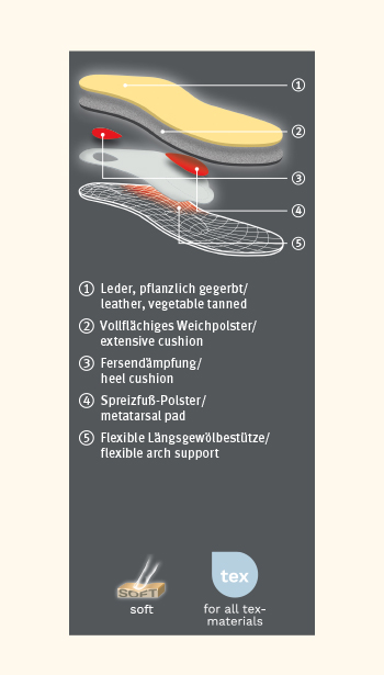 A palmilha pedag® Viva® Low é fabricada com pele bovina leve e respirável (obtida por curtimento vegetal) sendo a mais apropriada para as pessoas com arco longitudinal baixo. Porque por baixo de um pé relaxado existe uma Viva...