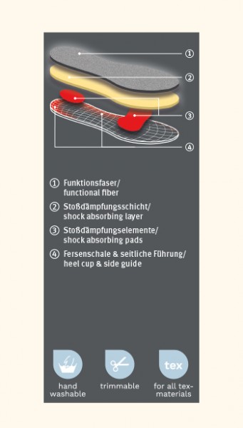 pedag® Performance é uma alternativa altamente funcional para as palmilhas internas dos sapatos desportivos: estabiliza o pé, pois envolve os calcanhares e dá suporte lateral. Tem um efeito flexível que absorve os choques nos calcanhares e antepé.