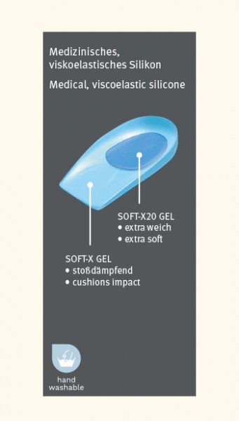 Os calcanhares aguentam com a maioria do nosso peso quando andamos e nos levantamos. A dor nos calcanhares é frequentemente o resultado de todas as nossas ações diárias. A calcanheira em gel é um curativo e um instrumento profilático ao mesmo tempo. O silicone em gel medicinal em dois graus de suavidade amortece de forma perfeita os calcanhares e absorve ondas de choque.