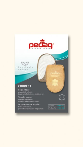 Se os seus calcanhares estão desnivelados, a “calcanheira de correção” pedag® Correct corrige gentilmente a sua passada. É moldada anatomicamente o que proporciona o suporte biomecânico para os pés e estabiliza o calcanhar.