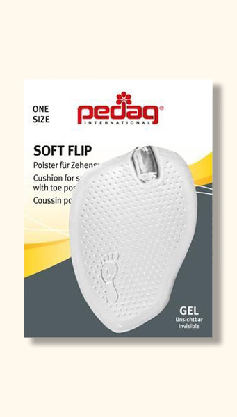 Não esconda os seus pés... As sandálias finas estão cada cada vez mais na moda no verão. O gel pad pedag® Soft Flip é completamente impercetível no calçado e protege a pele sensível na fricção entre os dedos do pé e amortece as zonas mais sensíveis do pé.